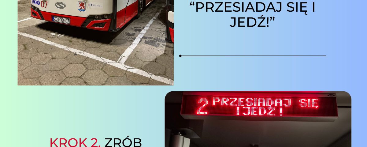 Uczestnik konkursu wykonuje zdjęcie, na którym znajduje się Uczestnik, hasło „Przesiadaj się i jedź” oraz autobus Zakładu Komunikacji Miejskiej Sp. z o.o.